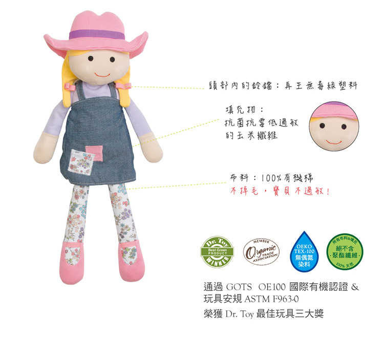 ※ 品名:【美國 Apple Park - 農場好朋友系列】有機棉安撫玩偶 - 農場女孩