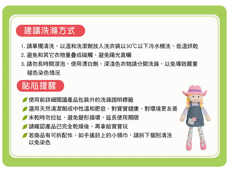 ※使用100%有機棉布料與抗菌玉米纖維填充物,不掉毛、低敏材質使用最安心