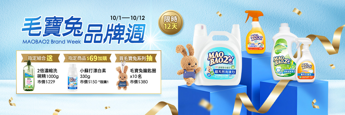 毛寶兔品牌週✨10/12前購買指定商品送毛寶兔濃縮洗碗精👉