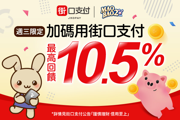 【街口支付x毛寶兔】週三限定!街口支付結帳最高享10.5%回饋