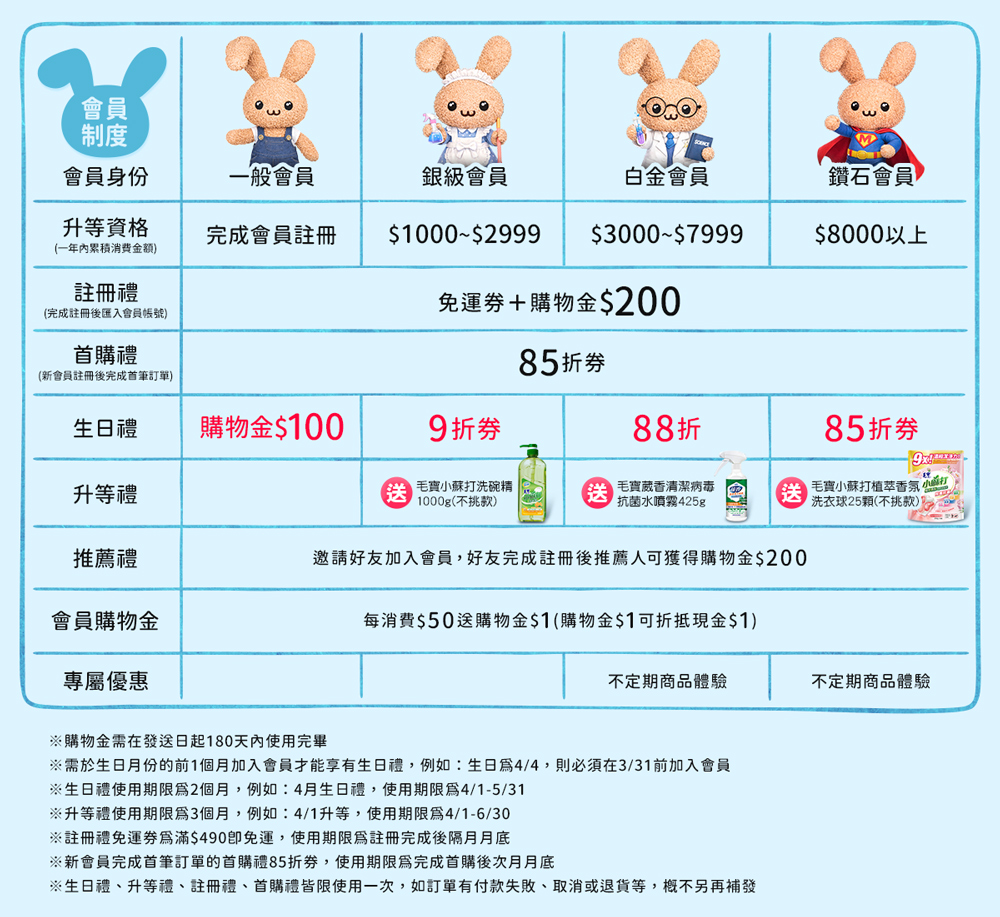【毛寶兔宅配網】會員制度說明