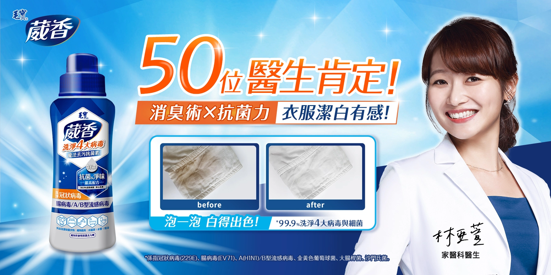 毛寶葳香洗淨4大病毒衣物抗菌水