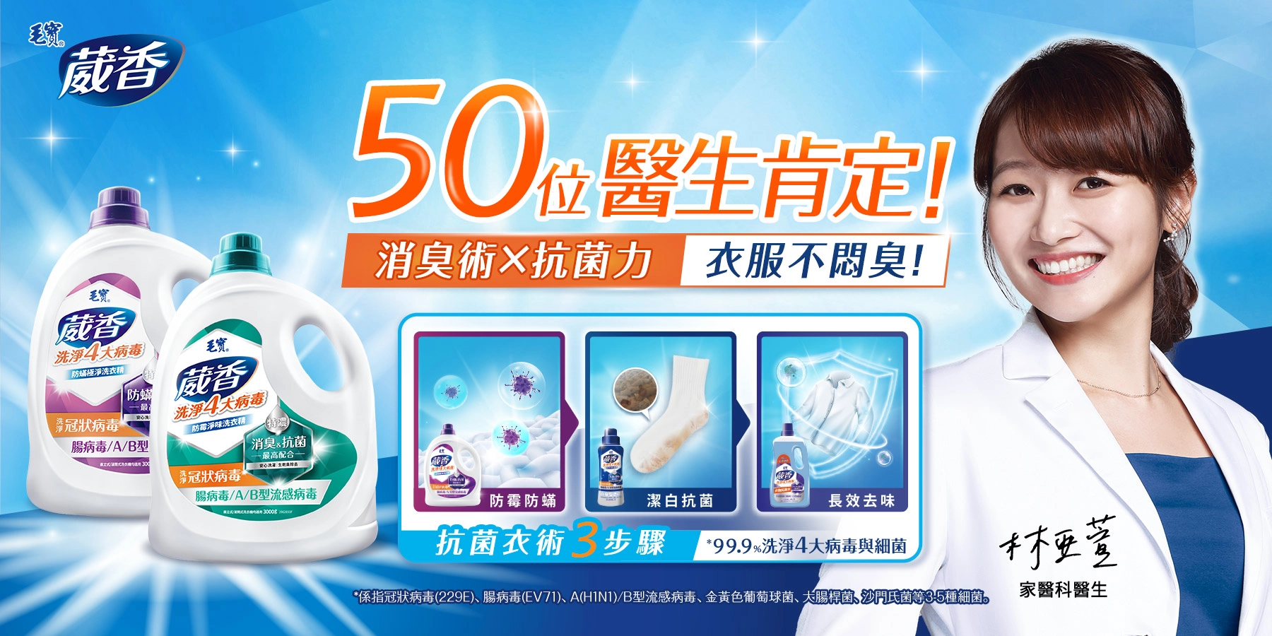 毛寶葳香洗淨4大病毒衣物抗菌水