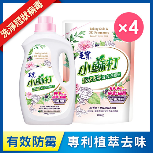 【毛寶】小蘇打晶球香氛洗衣液體皂-防霉淨味2000g+補充包1800g x4