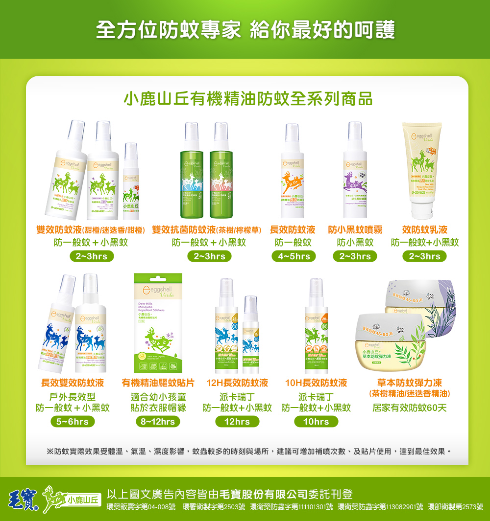 12小時長效防蚊,有效防護一般蚊+小黑蚊