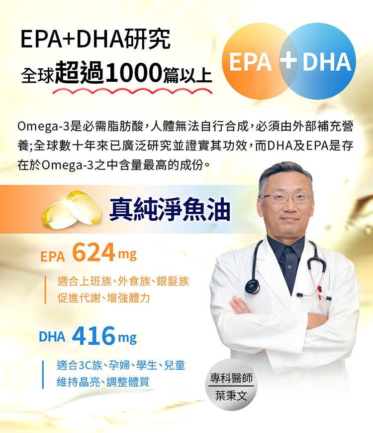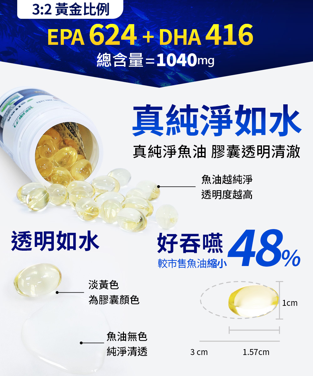 DHA 416+EPA 624 總含量1040mg,高濃度