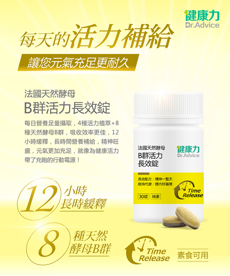 【Dr.Advice 健康力】法國天然酵母B群活力長效錠(30錠/瓶)