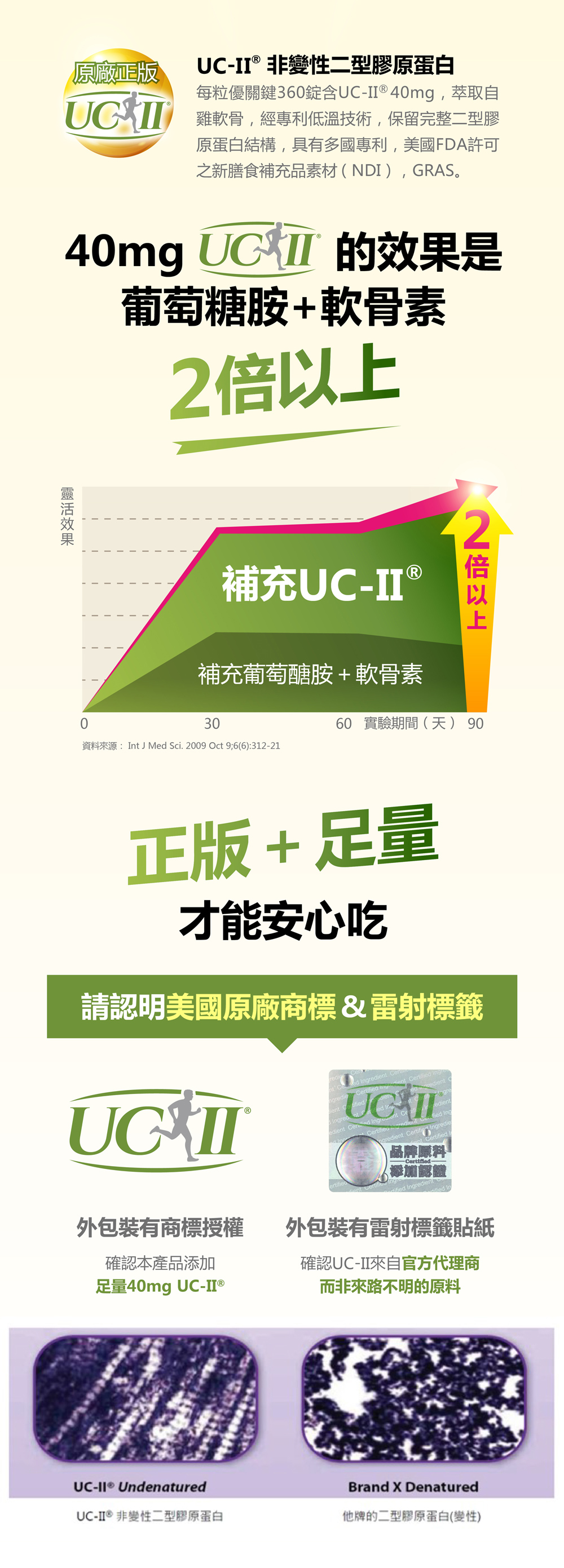 足量UC-II添加(每份40毫克)