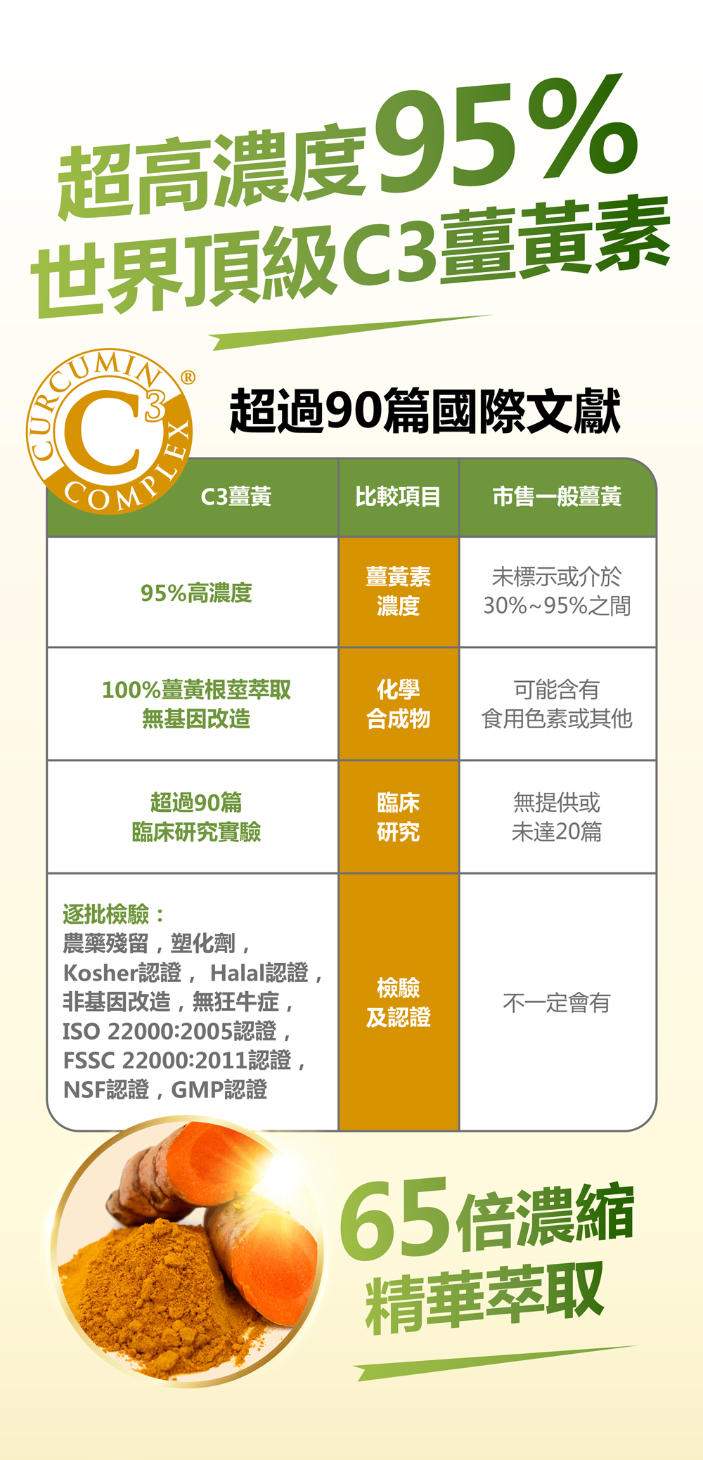 超高濃度95%世界頂級C3薑黃素