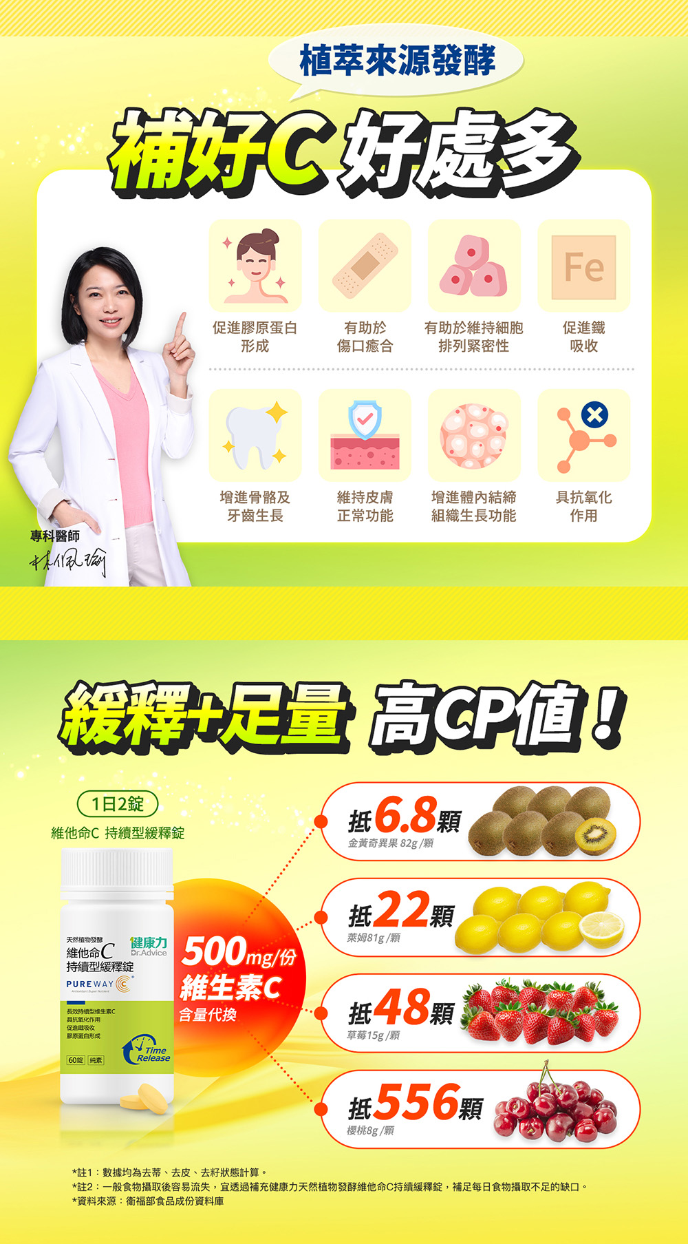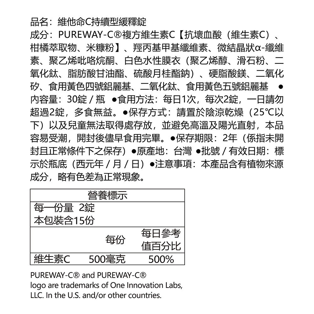 【Dr.Advice 健康力】維他命C持續型緩釋錠(30錠/瓶)