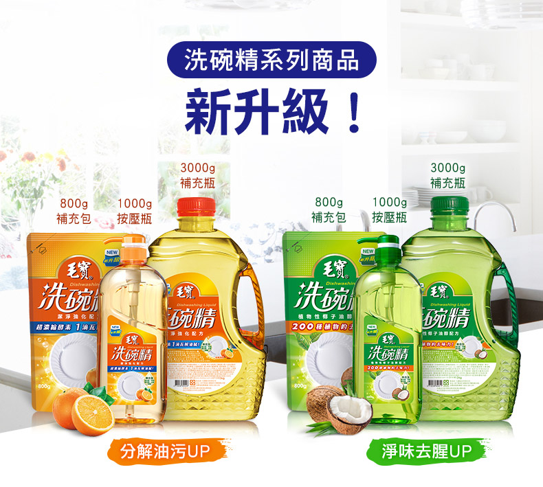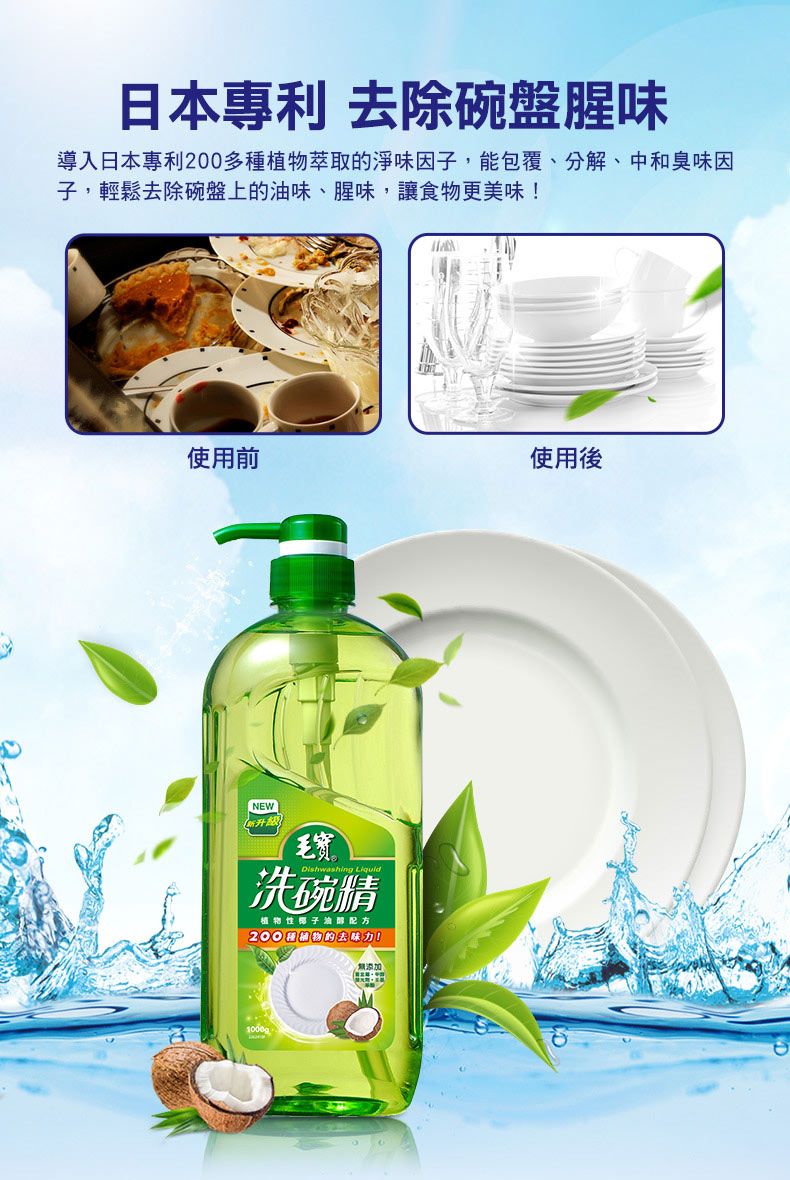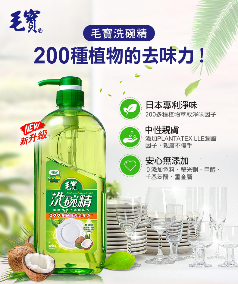 【毛寶】洗碗精-植物性椰子油制臭升級1000g + 補充包800g