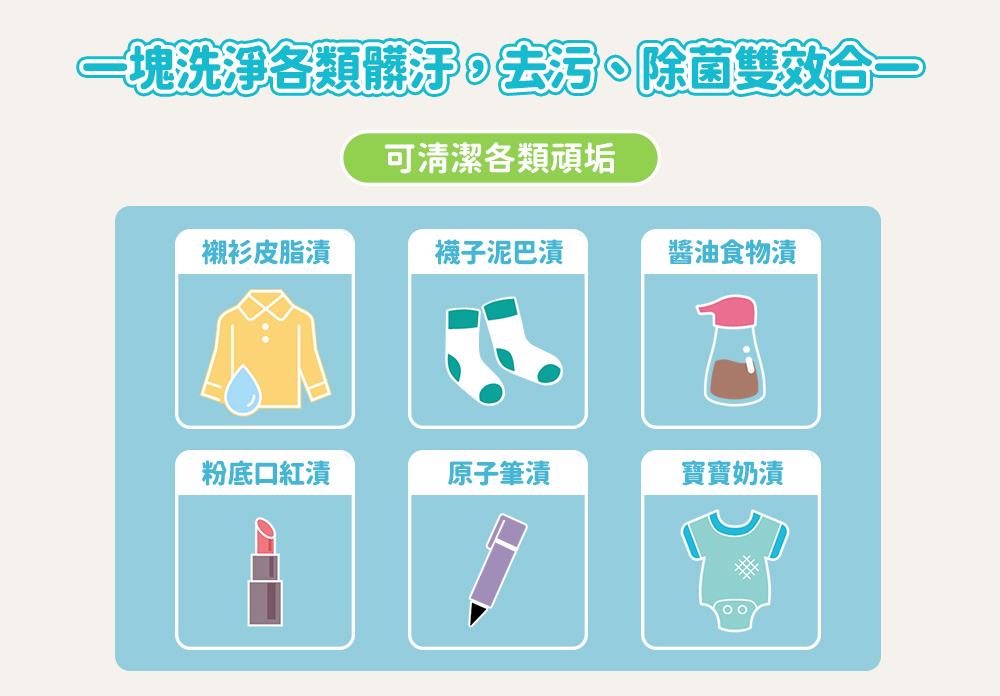 小蘇打潔白淨味:添加小蘇打,強化洗淨與去味,輕鬆帶走異味與污漬