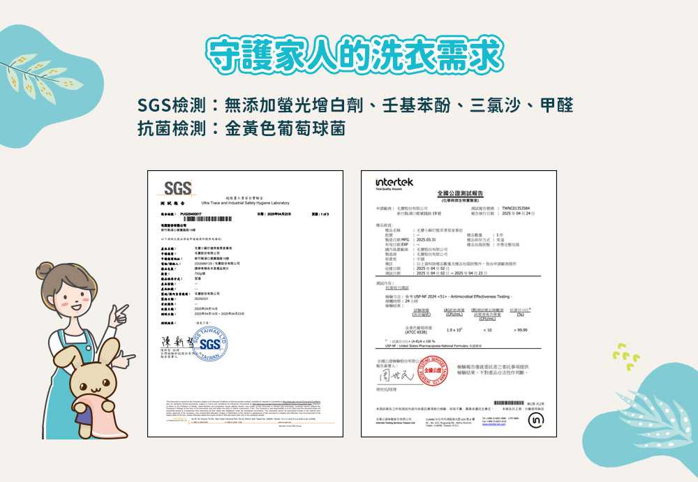 無添加有害物質:無添加全磷酸鹽、壬基苯酚、三氯沙、螢光增白劑等有害物質
