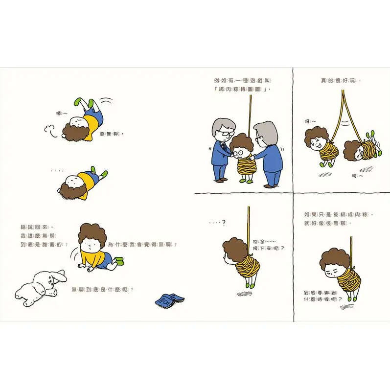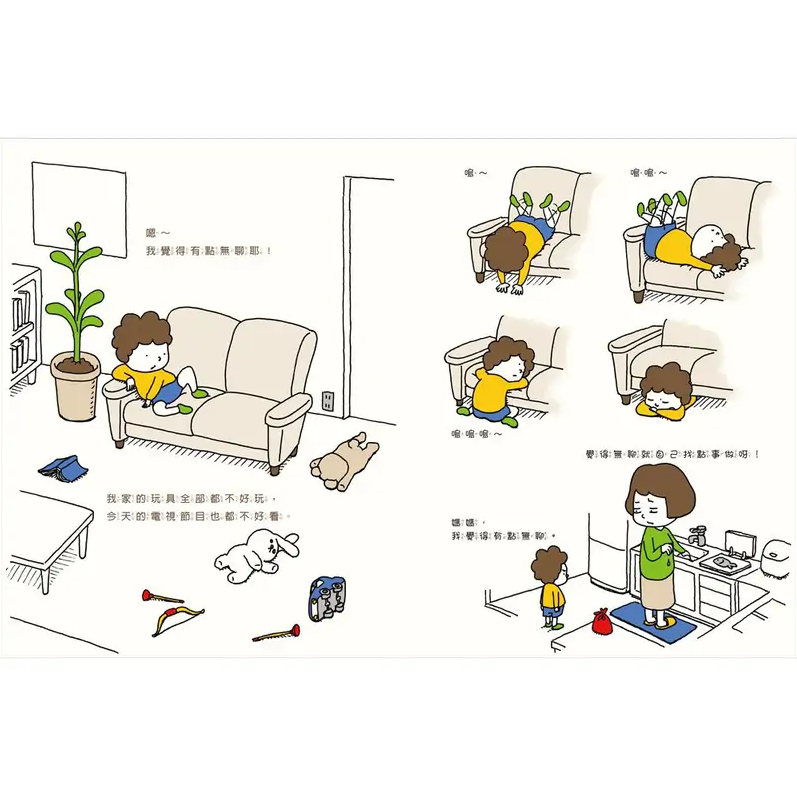 這對話幾乎是每個家庭無時無刻發生的親子日常光景。「為什麼我會無聊」、「無聊到底是什麼呢」、「無聊到底是誰害的」,透過孩子在百般無聊至極時,對內心的自問自答,作者帶領我們思考何謂無聊,及如何處理孩子的無聊抱怨。