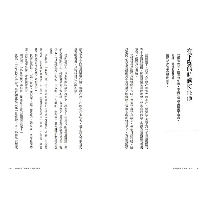 從孩子的角度來看,其實他也不會期待你先幫他打出一條血路。他只需要你好好愛他、聽他說話,在挫折的時候支持他、幫他找資源,而這些是你可以做,更是別人做不來的。