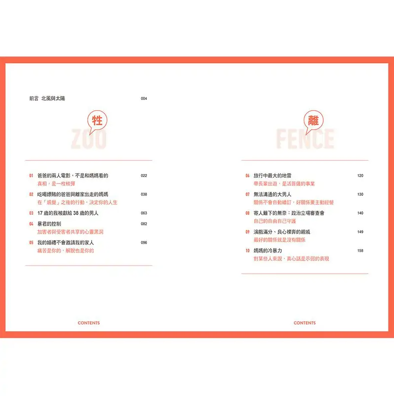 不過,不愛父母也是沒關係的,誰說我們一定要愛父母呢?我知道,有些人讀到這邊,眉頭已經皺起來了。「這是一本在宣揚不孝、離經叛道的書嗎?」、「爸媽生養我們多辛苦,你怎麼能說出這種大逆不道的話?」