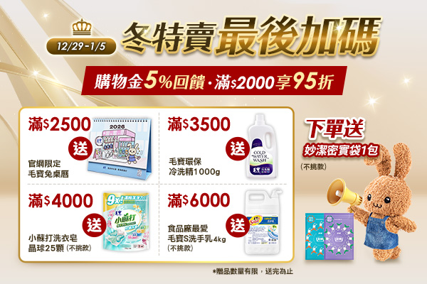 冬特賣最後加碼⚡全館滿$2000享95折優惠✌️下單送妙潔密實袋